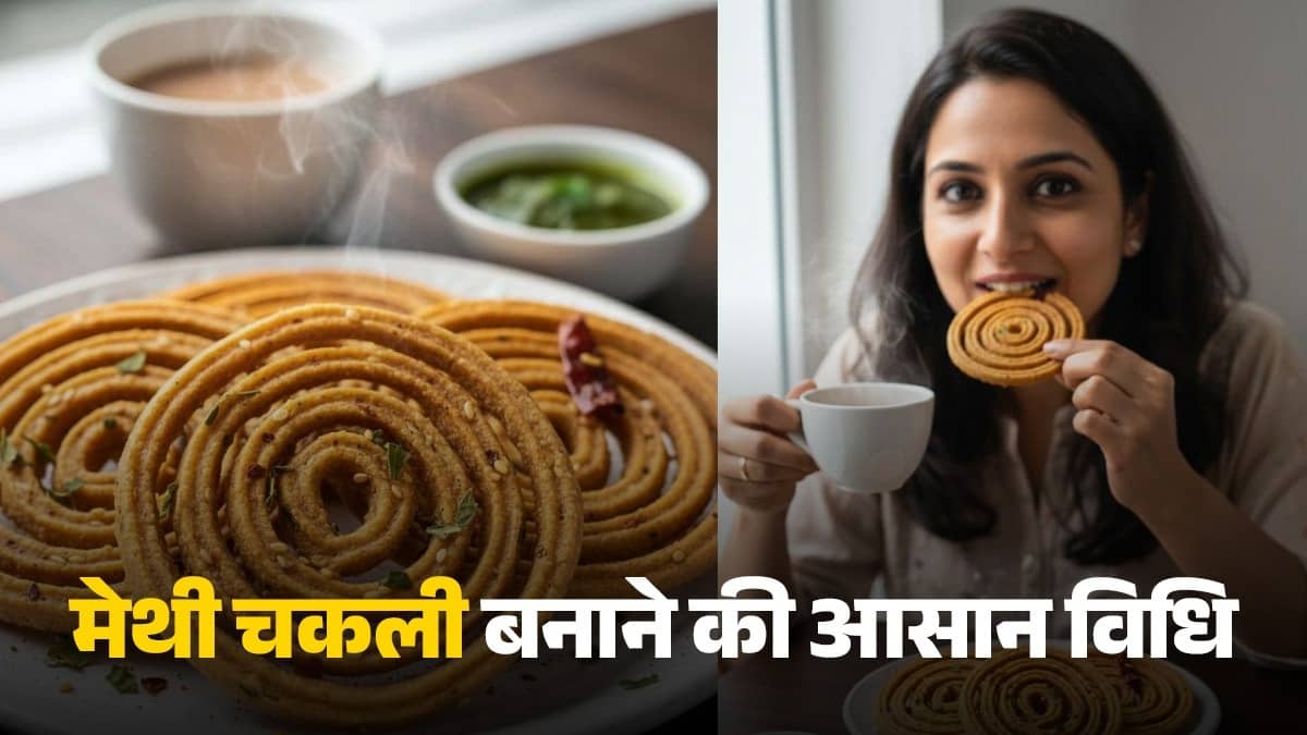 How To Make Methi Chakli At Home: सर्दियों में गरम चाय के साथ कुछ कुरकुरा खाया जाए तो इवनिंग स्नैक का मजा दोगुना हो जाता है। ऐसे में मेथी वाली चकली एक परफेक्ट ऑप्शन हो सकता है। बता दें कि स्वाद में लाजवाब यह स्नैक सेहत के लिए फायदेमंद होता है और बनाने में बेहद आसान भी होता है। मेथी की खुशबू और मसालों का ट्विस्ट इसे और भी खास बना देता है। तो चलिए जानते हैं इसे बनाने की आसान रेसिपी।