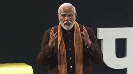 भारत मंडपम पर छात्रों के साथ संवाद करते हुए PM मोदी ने कहा, 'एक प्रकार से परीक्षा पे चर्चा कार्यक्रम मेरे लिए भी परीक्षा होता है'।