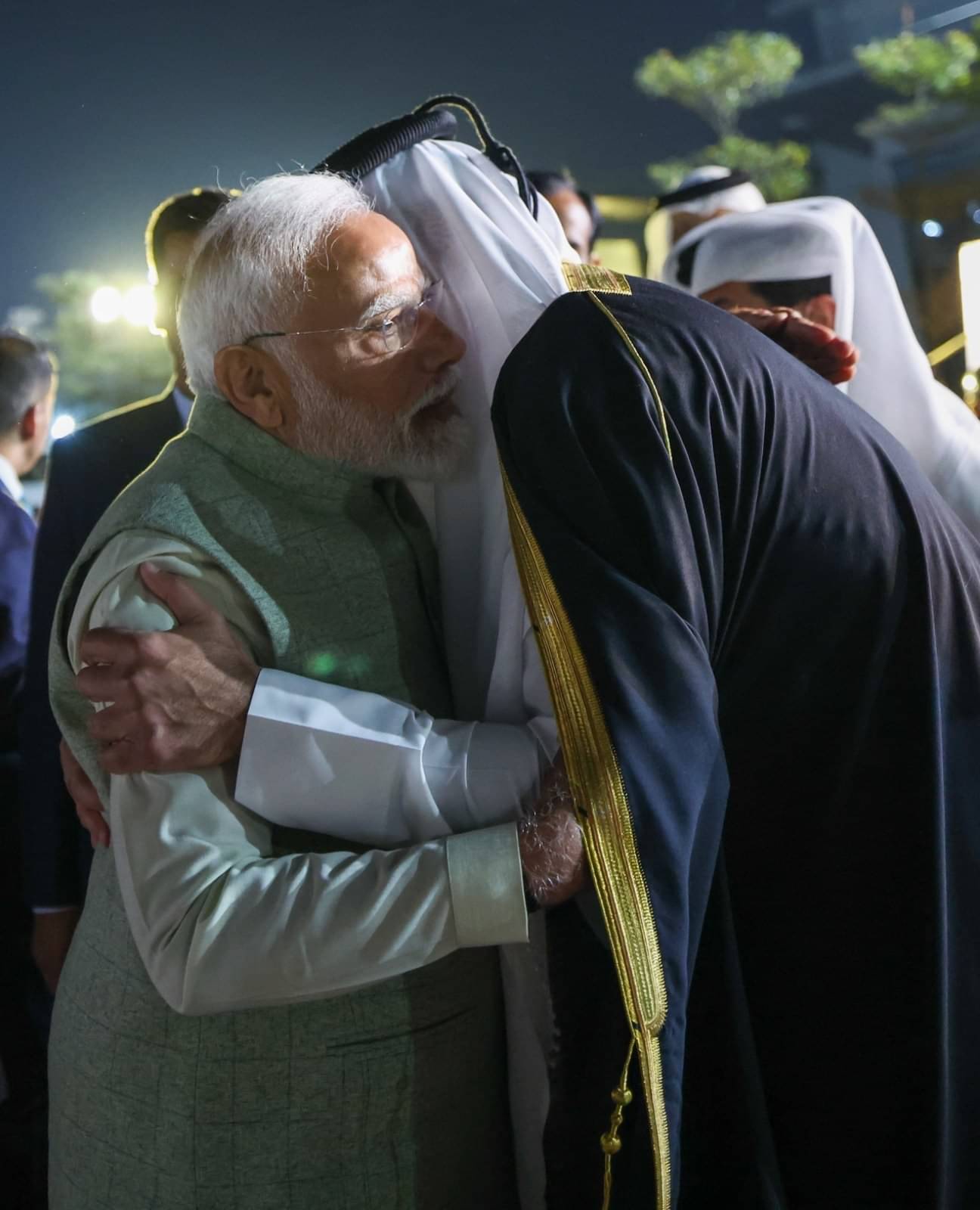 पीएम मोदी ने एयरपोर्ट की तस्वीरें शेयर कर लिखा, "अपने भाई, कतर के अमीर शेख तमीम बिन हमद अल थानी का स्वागत करने के लिए हवाई अड्डे पर गया। भारत में उनके सफल प्रवास की कामना करता हूं और कल हमारी मुलाकात का बेसब्री से इंतजार कर रहा हूं।"