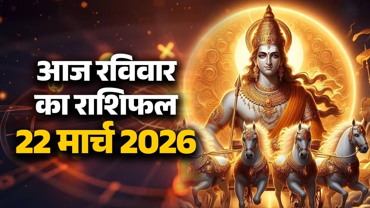 Aaj Ka Rashifal 22 March 2026: आज 22 मार्च 2026, दिन रविवार है। रविवार का दिन भगवान सूर्यदेव को समर्पित होता है। सूर्यदेव ऊर्जा, सफलता, तेज और मान-सम्मान के देवता हैं। आज के दिन सच्ची श्रद्धा से सूर्य भगवान का ध्यान करने से जीवन में सकारात्मकता और सफलता आती है। तो चलिए जानते हैं कि आज सभी 12 राशियों के लिए सितारे क्या कहते हैं।