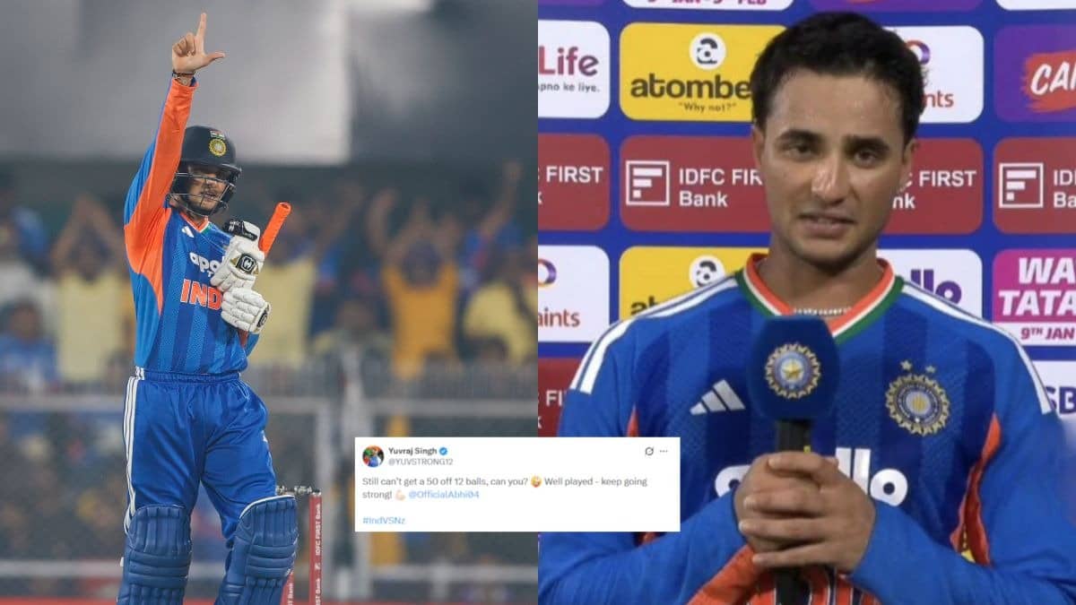 Abhishek Sharma: न्यूजीलैंड के खिलाफ खेले गए तीसरे टी20 मैच में अभिषेक शर्मा 14 गेंदों में फिफ्टी लगाकर एक बार फिर सुर्खियों में आ गए। लेकिन, इस आक्रामक पारी के बावजूद अभिषेक के गुरू युवराज ने उनको ट्रोल कर दिया और एक चैलेंज दे दिया।