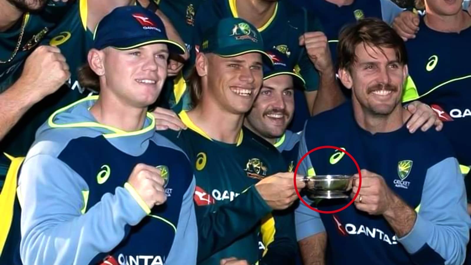 ऑस्ट्रेलियाई खिलाड़ी कप्तान मिचेल मार्श का इंतजार कर रहे थे कि वो ट्रॉफी लेकर आएंगे तो जश्न मनाया जाएगा, लेकिन उनकी नजर जब इस कटोरी पर पड़ी तो वो भी हैरान हो गए। सब ने उसे हाथ में लेकर देखा कि आखिर ये है क्या, फिर हंस-हंसकर लोटपोट होने लगे। सोशल मीडिया पर ये वीडियो तेजी से वायरल हो रही है और फैंस इसपर मजेदार कमेंट्स कर रहे हैं।