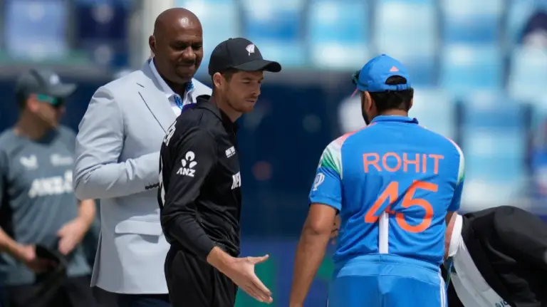 IND vs NZ Champions Trophy Final: चैंपियंस ट्रॉफी 2025 के फाइनल में भारत का सामना न्यूजीलैंड से है। दुबई इंटरनेशनल क्रिकेट स्टेडियम में खेले जा रहे महामुकाबले में न्यूजीलैंड के कप्तान मिचेल सैंटनर ने टॉस जीतकर पहले बल्लेबाजी करने का फैसला किया है। हालांकि, भारतीय कप्तान रोहित शर्मा टॉस हारने के बाद भी निराश नहीं दिखे और उन्होंने कहा कि इस पिच पर बाद में बैटिंग करना भी ठीक रहेगा।