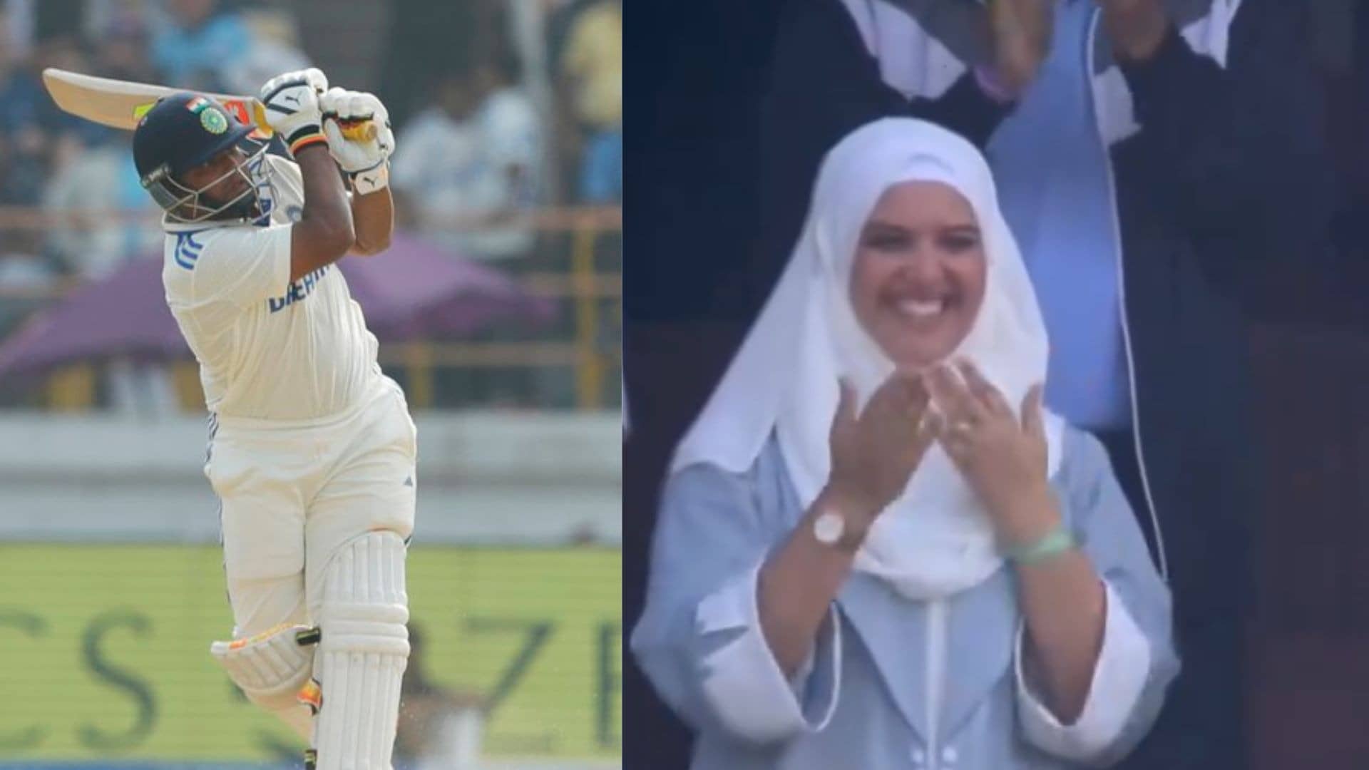 IND vs ENG: सरफराज खान ने अपने डेब्यू मैच में जड़ा अर्द्धशतक। पिता और बीबी की खुशी का ठिकाना नही रहा। स्टैंड्स से पिता बजाई ताली तो बीबी ने दी फ्लाइंग KISS.