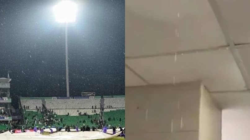 सोशल मीडिया पर एक वीडियो तेजी से वायरल हो रहा है जिसमें देख सकते हैं कि महज चंद घंटे की बारिश ने लाहौर के गद्दाफी स्टेडियम का हाल बुरा कर दिया है। वहां के लोकल मीडिया चैनल ने इसका पर्दाफाश कर दिया। वायरल वीडियो में देख सकते हैं कि स्टेडियम के बाथरूम के छत से पानी टपक रहे हैं। स्टेडियम का छत भी लीक कर रहा है।