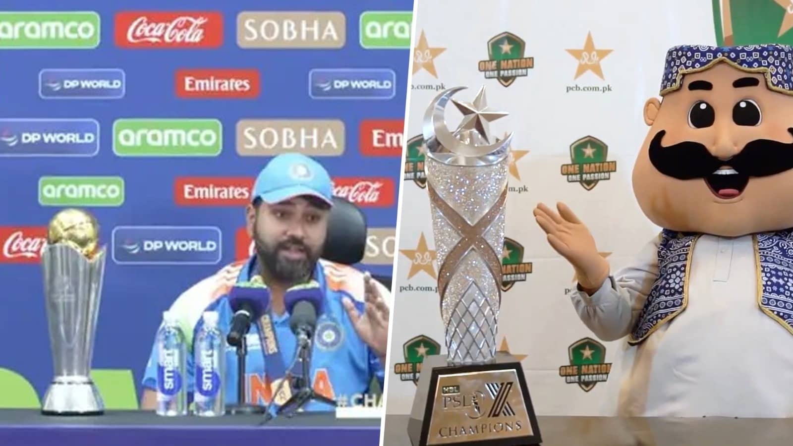 दरअसल, इस साल पाकिस्तान क्रिकेट बोर्ड ने खुद अपने पैर पर कुल्हाड़ी मारने का फैसला किया है। आप सोचेंगे कैसे? आईपीएल 2025 का आगाज 22 मार्च से हो रहा है और ये 25 मई तक चलेगा। वहीं पाकिस्तान सुपर लीग यानि PSL भी इसी दौरान शुरू होने वाला है। PSL को लेकर प्रमोशन के दौरान मुल्तान सुल्तान्स ने एक वीडियो जारी कर PSL 2025 की ट्रॉफी दिखानी चाही। इसमें एक मस्कट भारतीय कप्तान रोहित शर्मा की नकल करते हुए नजर आ रहा है।