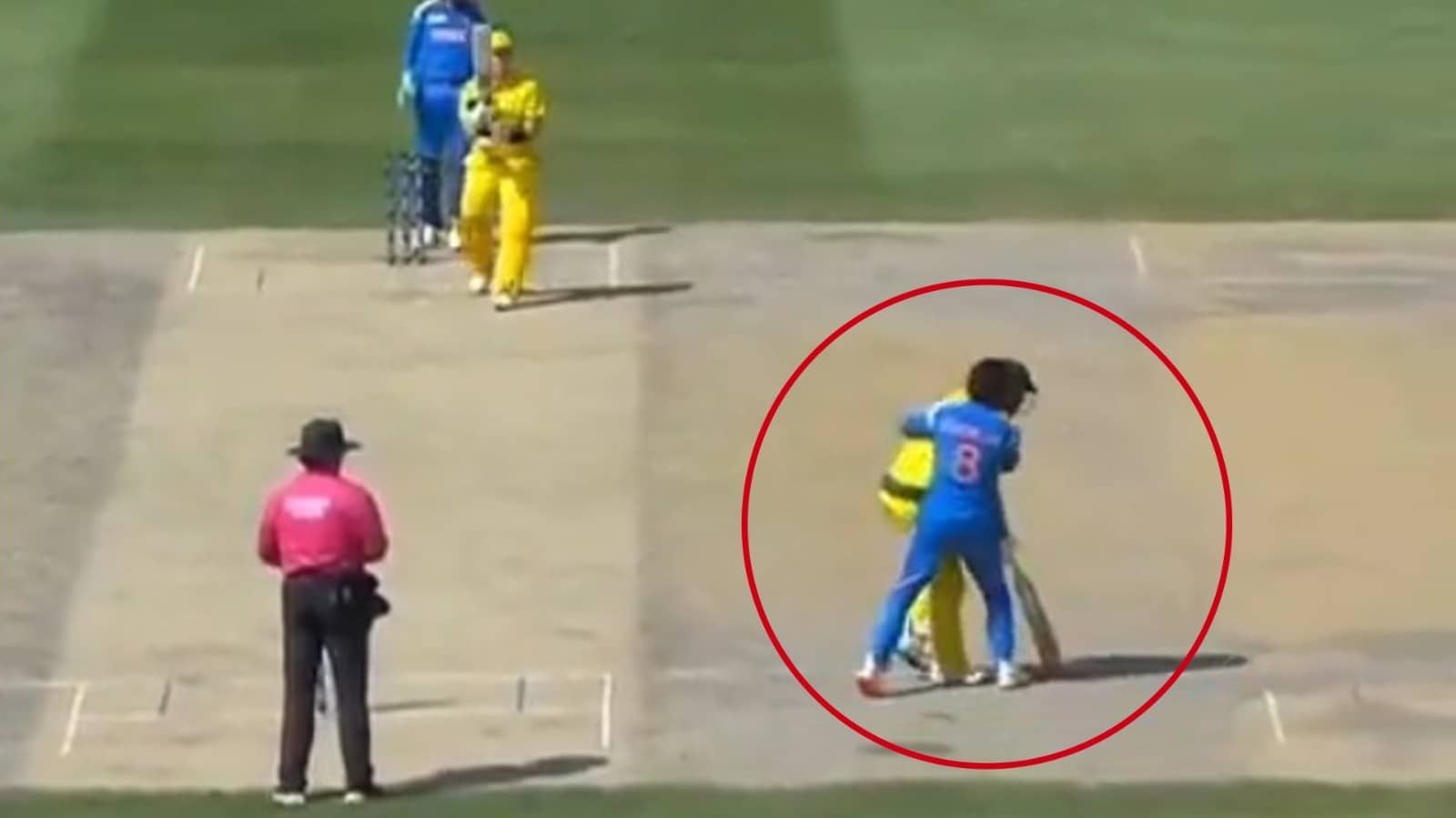 21वें ओवर में मजेदार घटना घटी। ऑस्ट्रेलियाई बल्लेबाज एक रन लेने के लिए भाग रहे थे लेकिन तभी भारतीय खिलाड़ी रवींद्र जडेजा ने उन्हें पीछे से पकड़ लिया।