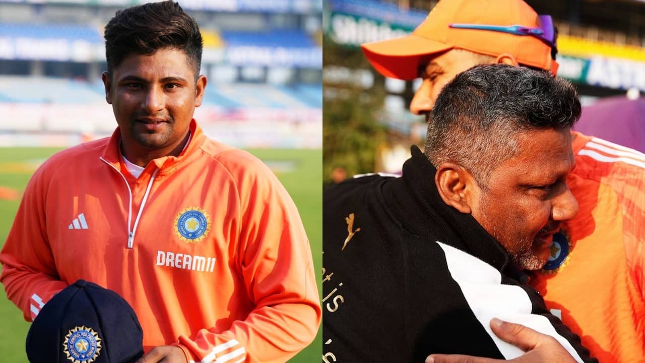 IND vs ENG 3rd Test, Sarfaraz Khan: भारत और इंग्लैंड के बीच जारी तीसरे टेस्ट के शुरू होने से पहले मैदान पर भावुक पल देखने को मिला। लंबे इंतजार के बाद सरफराज खान को अंतरराष्ट्रीय टेस्ट डेब्यू करने का मौका मिला। इस दिन को देखने के लिए उनके पिता की आंखें तरस गई थी, और जब ये पल आया तो उनकी आंखें नम हो गई। उन्होंने अपने बेटे को गले लगाकर खूब रोया।