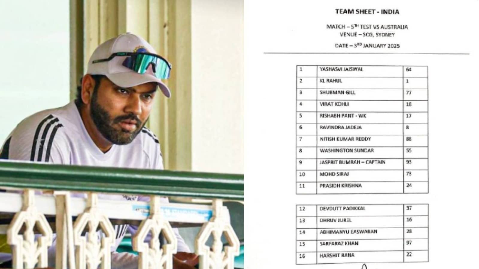 जब जसप्रीत बुमराह ने कहा कि रोहित ने लीडरशिप दिखाते हुए खुद आराम करने का फैसला किया है और ड्रेसिंग रूम का माहौल ठीक है तो फैंस ने राहत की सांस ली। लेकिन इस बीच सोशल मीडिया पर एक ऐसी तस्वीर वायरल हुई जिससे क्रिकेट जगत में खलबली मच गई। सिडनी टेस्ट में खेल रही टीम इंडिया के खिलाड़ियों की शीट सामने आई और उसमें दूर-दूर तक रोहित शर्मा का नाम नहीं दिखा।
