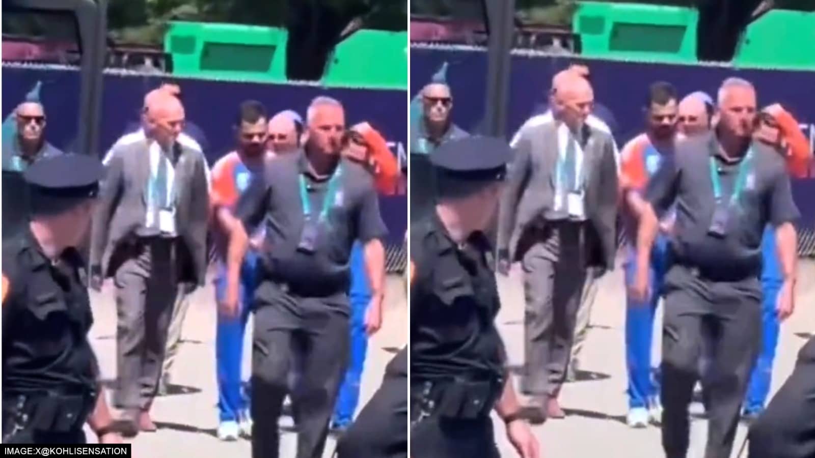 भारतीय दिग्गज बल्लेबाज विराट कोहली (Virat Kohli) न्यूयॉर्क के नासाउ काउंटी क्रिकेट स्टेडियम (Nassau County Cricket Stadium) में हुआ ये मैच नहीं खेले, क्योंकि वो कुछ समय पहले ही न्यूयॉर्क (New York) पहुंचे थे। ऐसे में टीम मैनेजमेंट ने उन्हें रेस्ट देने का फैसला किया, हालांकि कोहली (Kohli) इस अभ्यास मैच के दौरान स्टेडियम में टीम के साथ मौजूद रहे। वो पूरी टाइट सिक्योरिटी के साथ स्टेडियम पहुंचे। इस दौरान स्टेडियम में उनके फैंस की भरमार देखने को मिली। भारी तादाद में फैंस कोहली को देखने पहुंचे। ये तो रही फैंस की बात, एक अमेरिकी पुलिसकर्मी भी कोहली के साथ फोटो खिंचाने को बेताब दिखा।