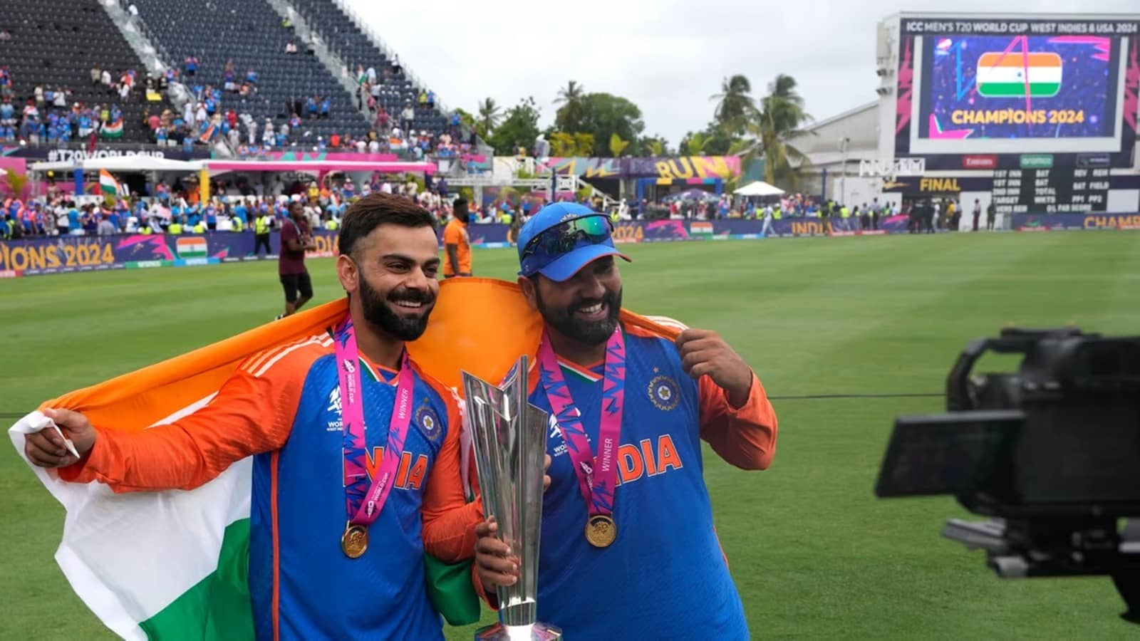 T20 World Cup 2024: रोहित शर्मा (Rohit Sharma) और विराट कोहली (Virat Kohli), भारत (India) के दो दिग्गज खिलाड़ी, जिन्होंने पहली बार एक साथ देश के लिए ICC ट्रॉफी जीती है। इन दोनों सूरमाओं ने T20 वर्ल्ड कप (T20 World Cup) जीता है।