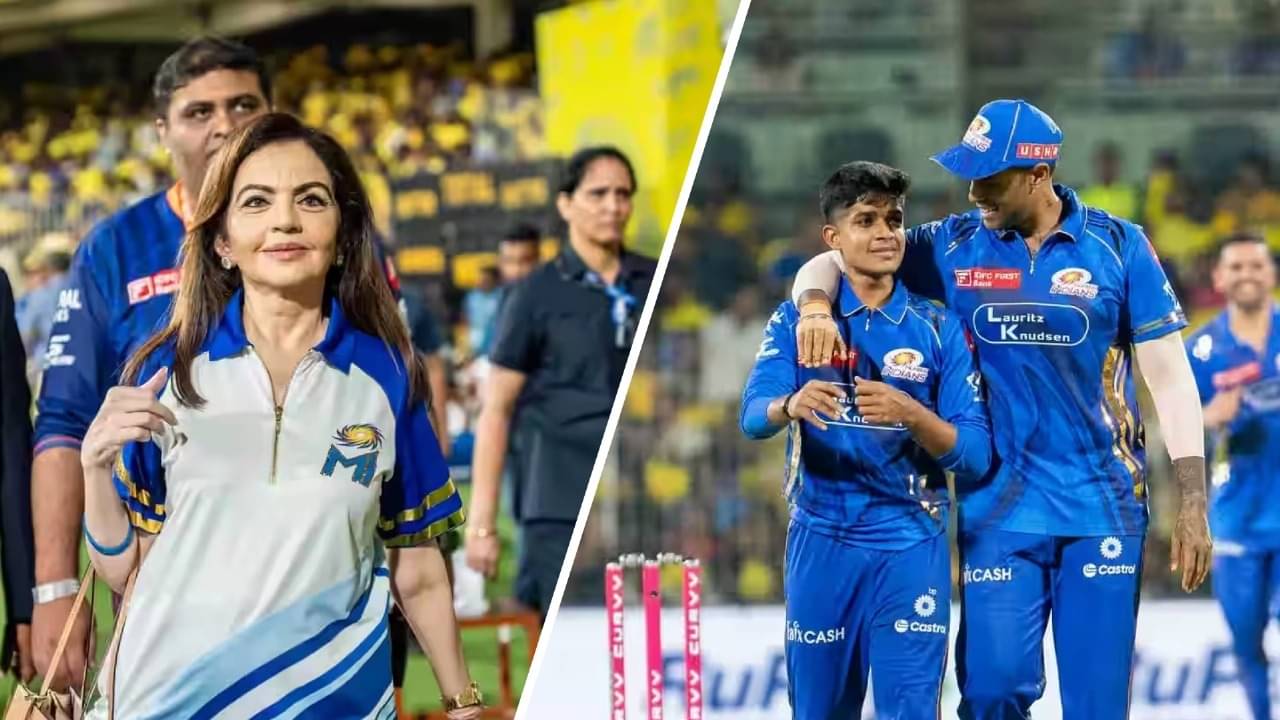 CSK के खिलाफ मैच में विग्नेश पुथुर बतौर इम्पैक्ट खिलाड़ी मैदान पर उतरे। उन्हें मुंबई इंडियंस की टीम मैनेजमेंट ने रोहित शर्मा की जगह मौका दिया। विग्नेश ने पहले ओवर से ही धमाल मचाना शुरू किया और खतरनाक अंदाज में खेल रहे ऋतुराज गायकवाड़ को पवेलियन की राह दिखाई। सोशल मीडिया पर एक वीडियो सामने आया है जिसमें देख सकते हैं कि विग्नेश पुथुर मुंबई इंडियंस की मालकिन नीता अंबानी के पैर छू रहे हैं।
