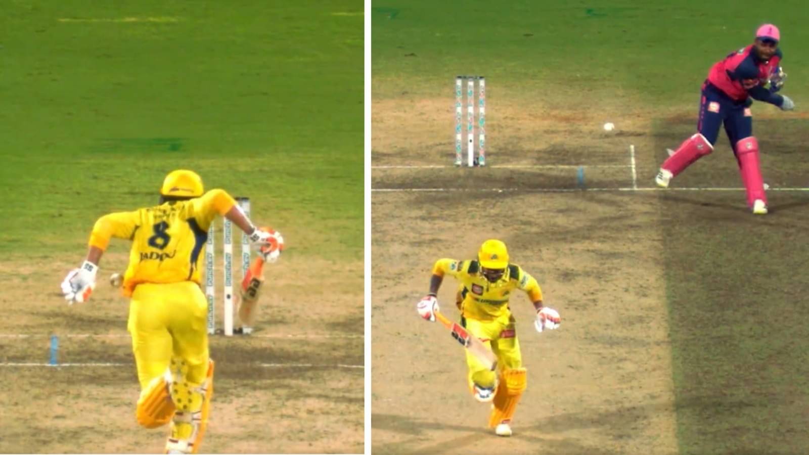 रविंद्र जडेजा राजस्थान रॉयल्स के खिलाफ काफी हड़बड़ी में बल्लेबाजी करते दिखाई दिए। शायद यही कारण रहा कि वे सिर्फ 5 रन बनाकर पवेलियन रवाना हो गए। जडेजा के आउट होने का वीडियो सोशल मीडिया पर तेजी से वायरल हो रहा है। कुछ फैंस कह रहे हैं कि जडेजा के साथ गलत हुआ तो कुछ का कहना है कि जडेजा की चालाकी उन्हीं पर भारी पड़ गई।