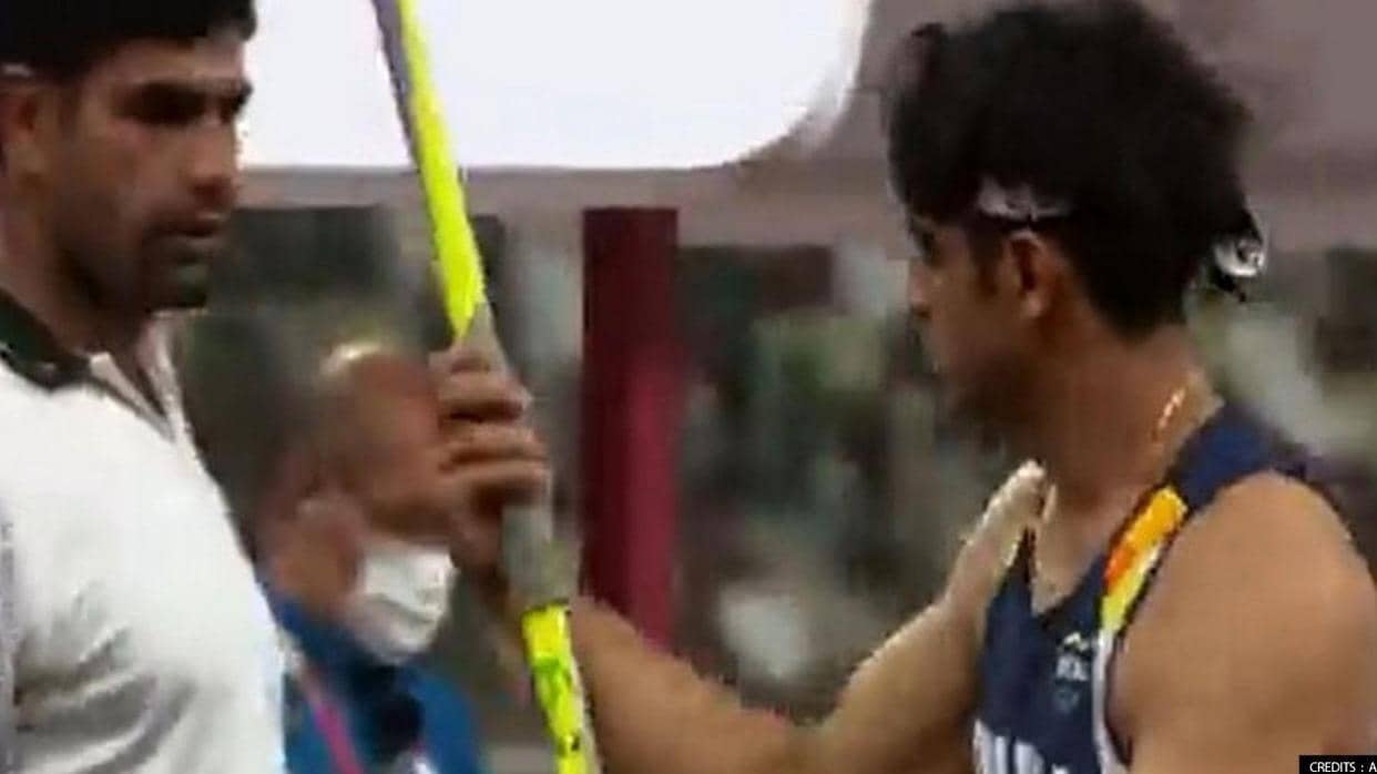 टोक्यो ओलंपिक के जेवलिन थ्रो के मुकाबले का वीडियो सोशल मीडिया पर वायरल हो रहा है। जिसमें साफ देखा जा सकता है कि फाइनल मुकाबले के दौरान अपनी बारी पर थ्रो करने से पहले नीरज (Neeraj Chopra) अपने जेवलिन को ढूंढ रहे थे। फिर उन्होंने देखा कि उनका जेवलिन पाकिस्तान के खिलाड़ी अरशद नदीम के पास है। अरशद नदीम नीरज के जेवलिन को लेकर घूम रहे थे। जब नीरज चोपड़ा ने यह देखा तो वह अरशद नदीम पास गए और अपना जेवलिन वापस ले लिया।
