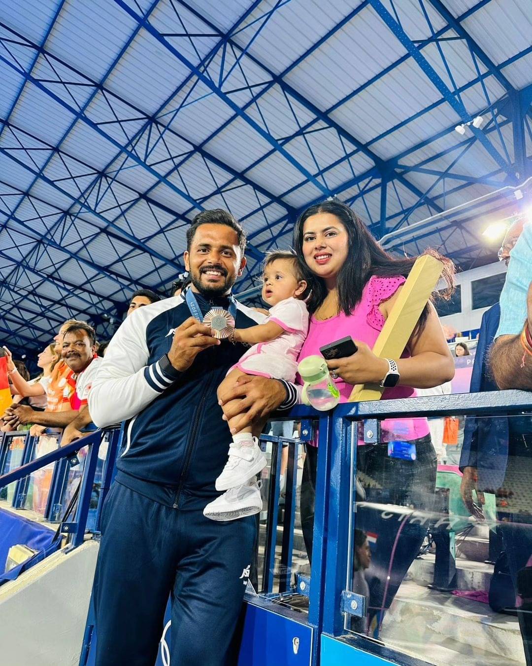 Harmanpreet Singh with his daughter: ओलंपिक गेम्स में लगातार दो बार भारत को ब्रॉन्ज मेडल दिलाने वाली भारतीय हॉकी टीम इस वक्त जश्न के माहौल में डूबी हुई है। टोक्यो ओलंपिक में भारत ने ब्रॉन्ज मेडल जीता था इसके बाद पेरिस ओलंपिक 2024 में भी भारत ने स्पेन को हराकर देश के नाम ब्रॉन्ज मेडल जीता।