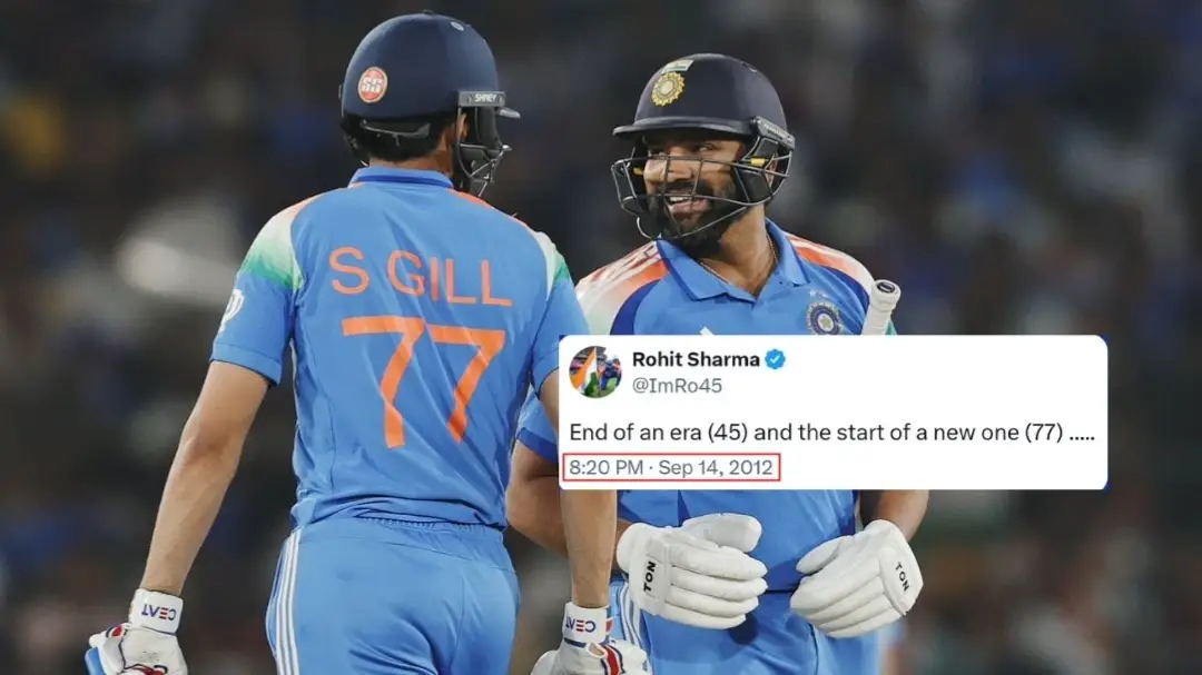 दरअसल, आज से 13 साल पहले वर्ष 2012 में रोहित शर्मा ने अपने जर्सी नंबर 45 को बदलकर 77 कर लिया था। उसके बाद ही उन्होंने वो ट्वीट किया था और लिखा था - एक युग का समापन (45) और एक युग की शुरुआत (77)। लेकिन कुछ समय बाद रोहित ने फिर से जर्सी बदली और पुरानी वाली ही पहनी। मतलब कि रोहित शर्मा ने जर्सी नंबर 77 को बदलकर हमेशा के लिए जर्सी नंबर 45 को ही पहना।