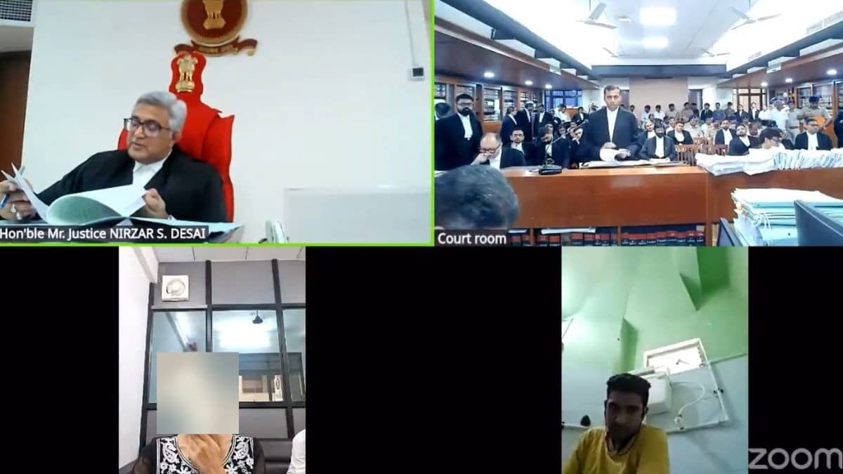 ये वीडियो 20 जून 2025 का बताया जा रहा है, जिसमें जस्टिस निरजर एस देसाई की पीठ मामले की सुनवाई कर रही है। वायरल वीडियो का शुरूआत में स्क्रीन पर 5 विंडो दिख रही हैं, 5वीं वीडियो में 'समद बैटरी'के नाम से लॉग इन व्यक्ति का क्लोजअप दिखाया गया है, जिसने अपने गले में ब्लूटूथ ईयरफोन पहना हुआ है।