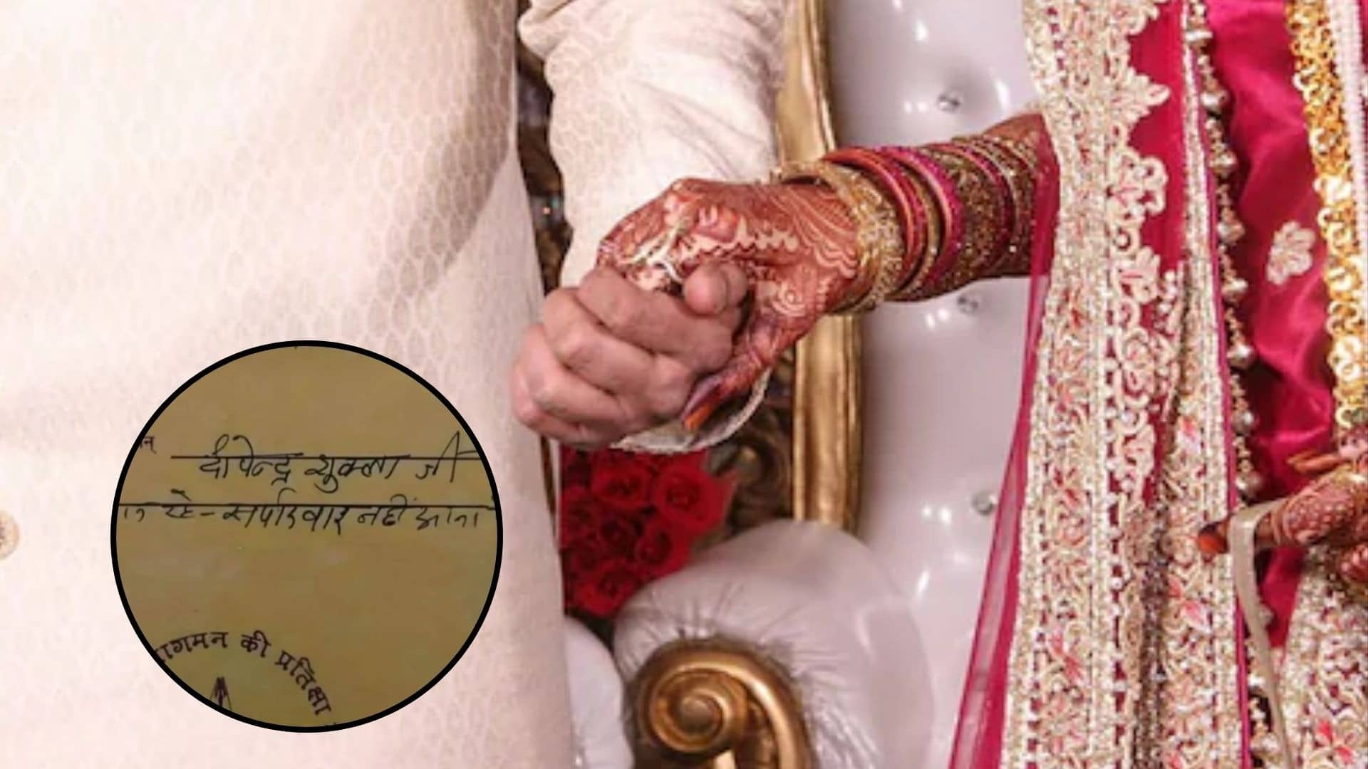इंटरनेट पर आग की तरह फैल रहे शादी के कार्ड में कुछ अजीबो-गरीब तरीके से निमंत्रण दिया गया है। इस कार्ड के मुताबिक, एक शख्स को शादी में बुलावा भेजा गया है। इसमें खासतौर पर मेंशन किया गया है कि शख्स को अकेले आना है पूरे परिवार के साथ नहीं। कार्ड पर लिखा है- दीपेंद्र शुक्ला जी, ध्यान रहे सपरिवार नहीं आना है। वहीं कैप्शन में हंसी वाली इमोजी के साथ लिखा है- शादी में ऐसे कौन बुलाता है भाई? कार्ड को देखने वालों ने अपना माथा पकड़ लिया।