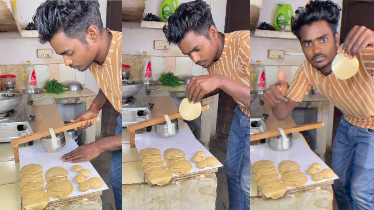 दरअसल, लड़के ने गोल पूरी बनाने के लिए अतरंगी जुगाड़ (Jugaad) भिड़ाया। गोल और फूली पूरियां अमूमन हर किसी को खाना पसंद है। लेकिन इसे बनाने में लगने वाली मेहनत लोगों के पसीने छूटा देती है। ऐसे में अगर बेलकर पूरियों को गोल करने वाला काम चुटकियों में हो जाए, तो क्या ही कहना। इन दिनों इंटरनेट पर ऐसा ही वीडियो छाया हुआ है जो सोशल मीडिया यूजर्स को काफी पसंद आ रहा है।