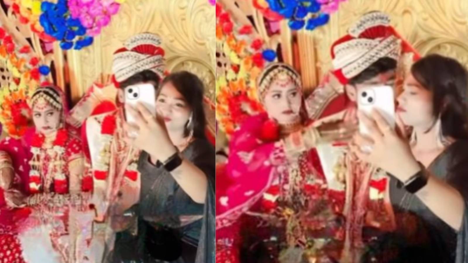दरअसल, हुआ यूं कि दूल्हा-दुल्हन दोनों स्टेज पर बैठे होते हैं। इस दौरान सभी मेहमान न्यूली वेड कपल को शादी की शुभकामनाएं देने पहुंचते हैं। तभी एक लड़की कपल के साथ सेल्फी लेने लगती है। देखते ही देखते दूल्हा भी उसके साथ सेल्फी लेने में मशरूफ हो जाता है और उसे किस करने की कोशिश करने लगता है। ये देखकर दुल्हन का गुस्सा सातवे आसमान पर पहुंच जाता है। फिर क्या था, दुल्हन ना आव देखती है ना ताव... और दूल्हे को गाल पर थप्पड़ जड़ देती है। अब यही वीडियो इंटरनेट पर छाया हुआ है।