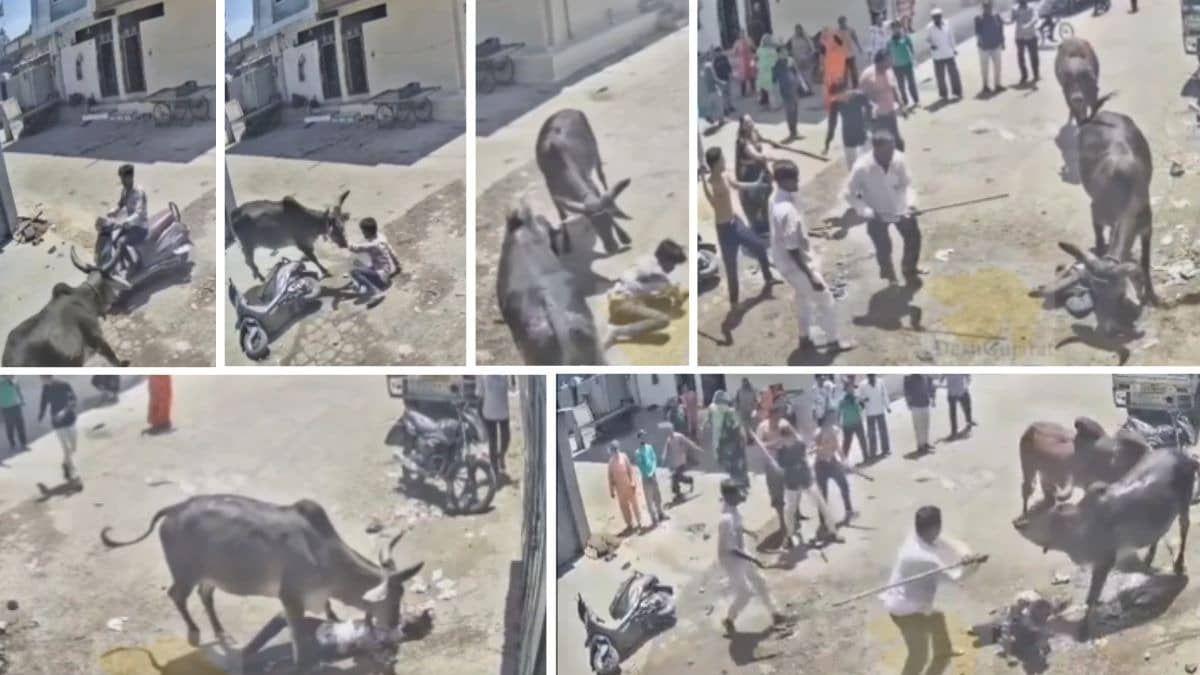 यह वीडियो देखकर लोग हैरान हैं। कई यूजर्स आवारा मवेशियों की समस्या पर सवाल उठा रहे हैं। गुजरात में आवारा पशुओं को लेकर पहले भी कई घटनाएं सामने आ चुकी हैं। स्थानीय प्रशासन से इस दिशा में कदम उठाने की मांग हो रही है। ऐसी घटनाएं आम हो रही हैं। ऐसे में ग्रामीण इलाकों में स्कूटी या बाइक चलाते वक्त सतर्क रहना जरूरी हो जाता है। अगर कोई मवेशी रास्ते में आए तो दूर से ही सावधानी बरतने की कोशिश करनी चाहिए। यह घटना एक बार फिर आवारा पशुओं की बढ़ती समस्या की ओर भी इशारा करती है। वीडियो देखकर हर कोई सोच में पड़ गया है कि आखिर सांड ने सिर्फ उस एक युवक पर ही हमला क्यों किया? इतनी भीड़ होने के बाद भी सांड लगातार युवक पर आगे-पीछे की लातों से हमला करता रहा।