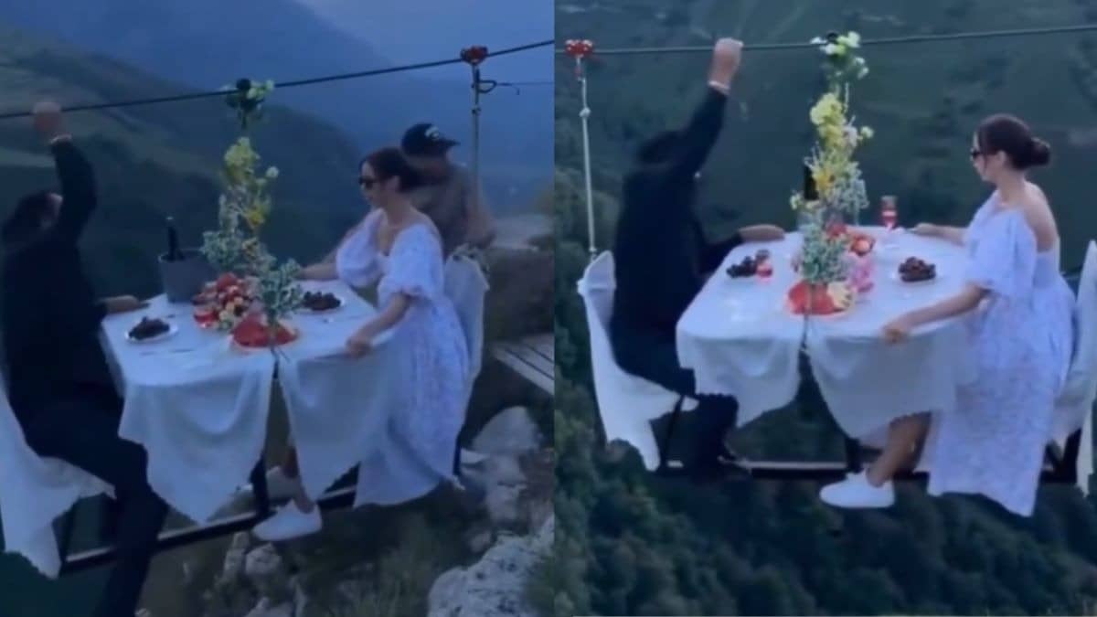 VIDEO: कपल का ये डिनर का चैलेंजिंग तरीका देख आप दांतों तले दबा लेंगे उंगली, हवा में झूलते हुए मौत पर खेल कर जो किया वो VIRAL