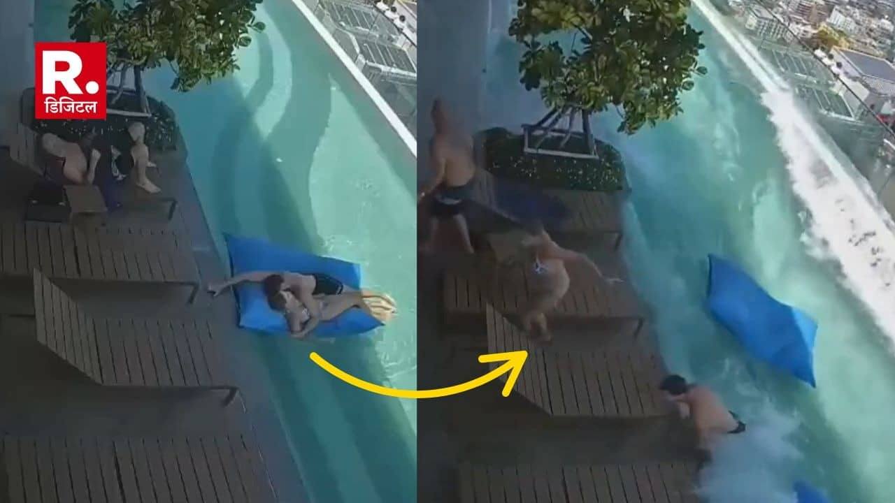 अर्धनग्न अवस्था में हाई-राइज बिल्डिंग के स्विमिंग पूल में मस्ती कर रहा था कपल, भूकंप आते ही सब छोड़ भागे Video Viral
