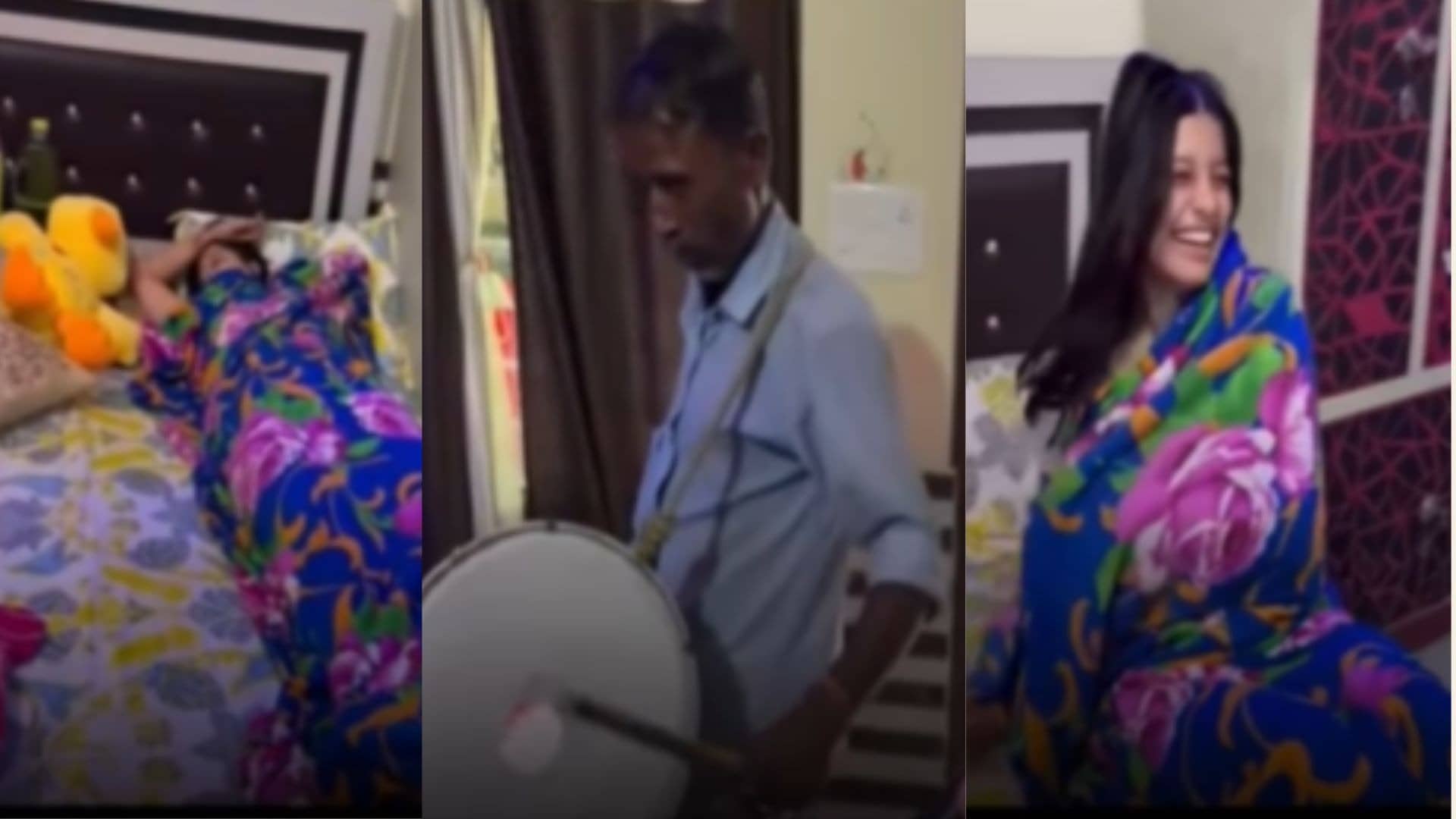 वीडियो की शुरुआत में नजर आ रहा है कि एक घर में बैंड वाले सीढ़ी पर चढ़ रहे हैं। वीडियो बना रही महिला कहती हैं कि अभी मत बजाना। उनको लेकर महिला एक कमरे में जाती है, जहां उनकी बेटियां सो रही होती हैं। कमरे में आकर वो लोग ढोल और बाजे बजाना शुरू कर देते हैं। इससे कंबल ओढ़कर सो रही लड़कियों की नींद टूट जाती हैं। वो दोबारा सोने की कोशिश करती हैं। कुछ देर के बाद मुस्कुराते हुए एक लड़की उठ जाती है।
