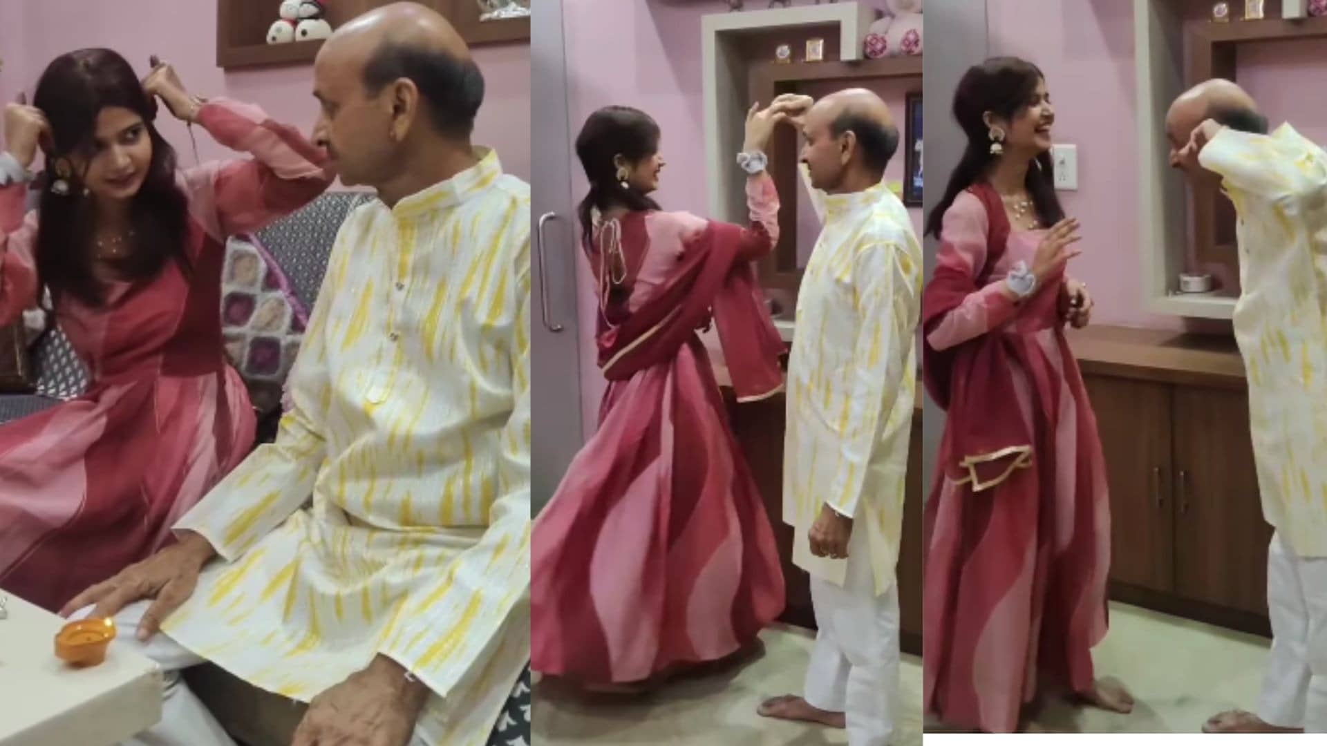 शुरुआत में पापा बेटियों की तरह ही हाथ घुमाते हैं, ठीक वैसा जैसा उन्होंने सिखा था। पर अगले ही पल स्टेप्स उल्टे-सीधे हो जाते हैं। वो नजर उतारने वाले स्टेप की जगह अलग ही कुछ कर देते हैं। ये देख बेटी अपनी हंसी रोक नहीं पाती। पापा की मासूम कोशिश और बेटी की प्यारी मुस्कान मिलकर एक बेहद क्यूट मोमेंट बन जाता है।