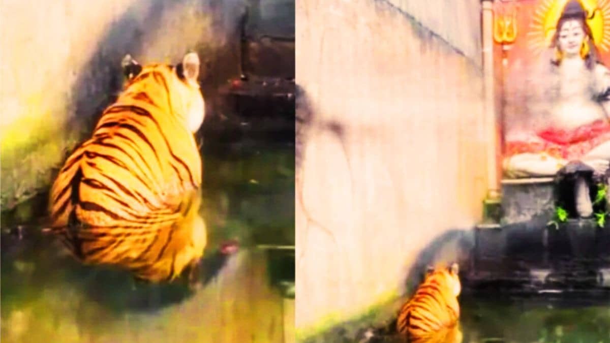 जी हां, वायरल हो रहे वीडियों में एक बाघ को भगवान शिव की मूर्ति के सामने शांत बैठे देखा गया। उसे देख ऐसा लग रहा है मानो वो चिंतन में बैठा हो। इस चंद सेकंड की क्लिप ने हर किसी का ध्यान अपनी ओर खींच लिया।