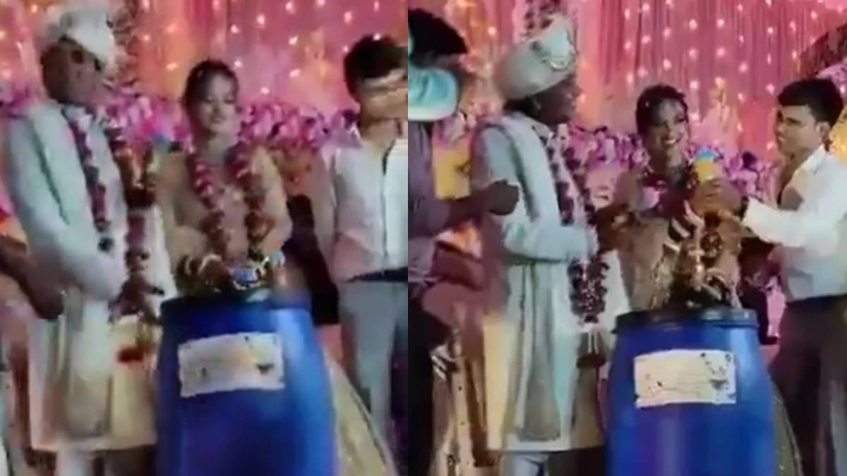 यह घटना उत्तर प्रदेश के हमीरपुर जिले की है, जहां एक शादी समारोह में कुछ दोस्तों ने नवविवाहित जोड़े को ऐसा अनोखा गिफ्ट दिया कि हर कोई हैरान रह गया। बारातियों और जनातियों की भीड़ के सामने दोस्तों ने दूल्हा-दुल्हन को एक नीला ड्रम भेंट किया। ड्रम देखते ही जहां दूल्हा चौंक गया तो वहीं दुल्हन अपनी हंसी रोक नहीं पाई। जैसे ही ड्रम खोला गया, उसमें से निकला झुनझुना, जिसे बजाने के लिए नवदंपति को कहा गया। इस मजाकिया पल को देखकर समारोह में मौजूद लोग ठहाकों से गूंज उठे। इस मजेदार गिफ्ट ने लोगों को कुछ दिनों पहले वायरल हुए 'मेरठ के सौरभ हत्याकांड' की याद दिला दी, जिसमें मुस्कान नाम की महिला ने अपने पति सौरभ की हत्या कर उसे नीले ड्रम में भर दिया था।