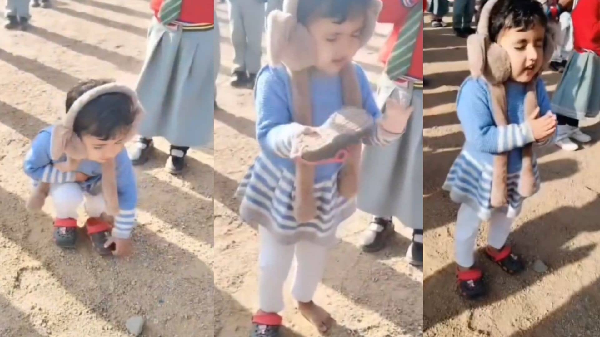 इसके बाद भी बच्ची ने न तो अपनी आंखें खोली और न ही प्रेयर तोड़ी। बच्ची आंखें खोले बिना ही झुकती है, जूता उतारती है, उसमें से मिट्टी झाड़ती है और फिर उसे वापस पहन लेती है... मानो वो चाहती है कि उसके इस पवित्र पल में कोई रुकावट नहीं आनी चाहिए। बच्ची की मासूमियत और गहरी आस्था का ये प्यारा नजारा सीधा लोगों के दिलों को छू गया।