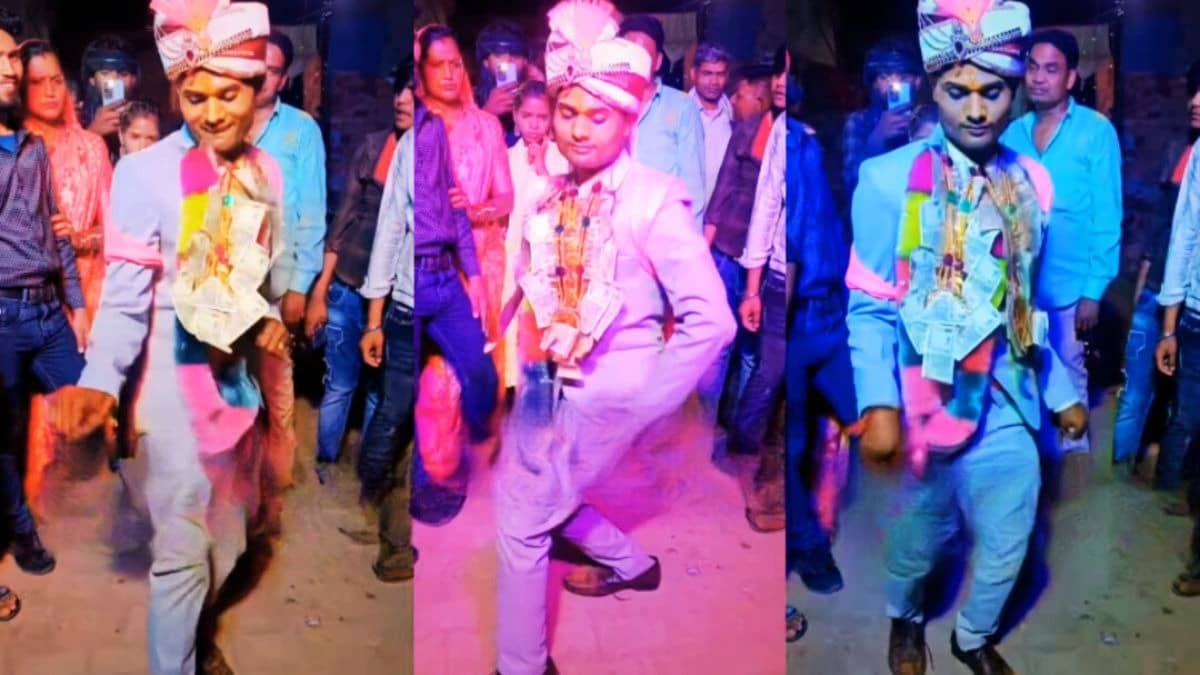 वायरल वीडियो में दूल्हा कोट-पैंट पहने नजर आ रहा है। सिर पर पगड़ी, गले में नोटों की माला और चेहरे पर जबरदस्त कॉन्फिडेंस लिए दूल्हा मनोज तिवारी के भोजपुरी गाने 'जब से चढ़ड बा जवानी' पर ऐसे ठुमके लगाता है कि हर कोई हैरानी से देखता रह गया। इस वीडियो को वहां मौजूद कुछ बारातियों ने अपने कैमरे में कैद कर लिया।