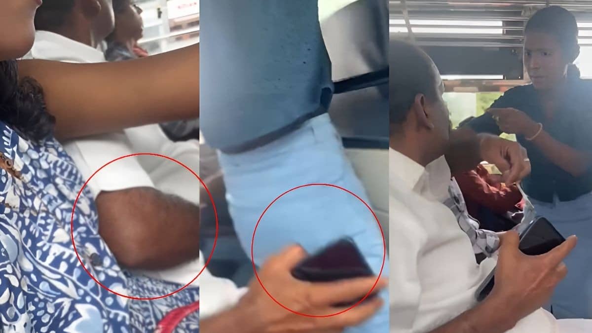 वायरल हो रहे इस वीडियो में सबसे पहले एक अधेड़ उम्र का आदमी अपने पास में बैठी लड़की को गलत तरीके से छूने की कोशिश करता है। वह अपने दाएं हाथ की कोहनी को लड़की के सीने से बार- बार बहाने से लगाता है। लड़की अपने फोन से चुपचाप सब रिकॉर्ड कर लेती है। फिर दूसरी महिला उठकर उस आदमी के सामने से जब निकलती है, तो उसे भी पीछे से छूता है। इसके बाद वह महिला गुस्से में अधेड़ को सबक सिखाती है।