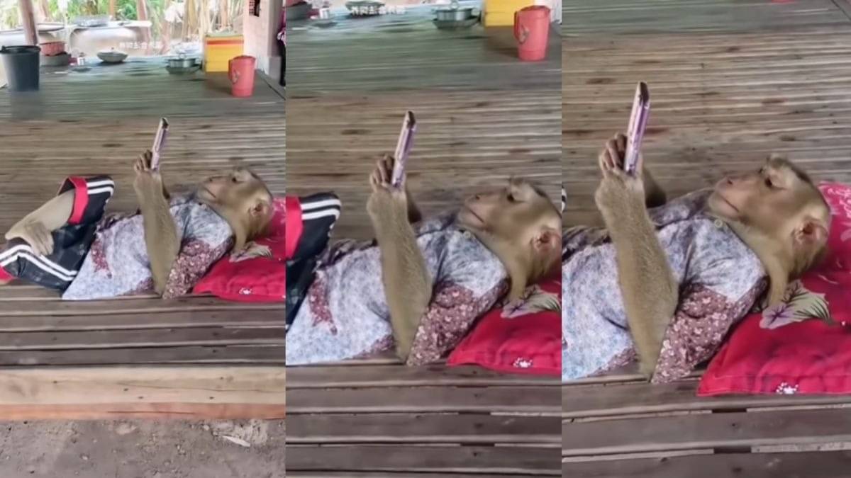गौरतलब है कि बंदरों को अधिकतर कूद-फांद करते देखा जाता है। लेकिन क्या आपने बंदरों को आराम फरमाते हुए फोन का इस्तेमाल करते देखा है? जी हां, सोशल मीडिया पर इन दिनों एक ऐसा ही वीडियो वायरल हो रहा है जिसमें वो बड़े मजे से फोन चलाता दिख रहा है।