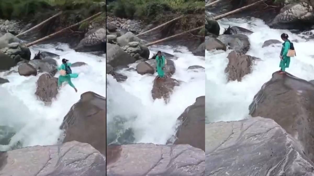 Nurse Viral Video: ये वीडियो अब सोशल मीडिया पर तेजी से वायरल हो रहा है जिसमें कमला को पत्थरों पर कूदते हुए नाले को पार करते देखा जा सकता है। ये वीडियो देख लोग नर्स के जज्बे और बहादुरी को सलाम कर रहे हैं।