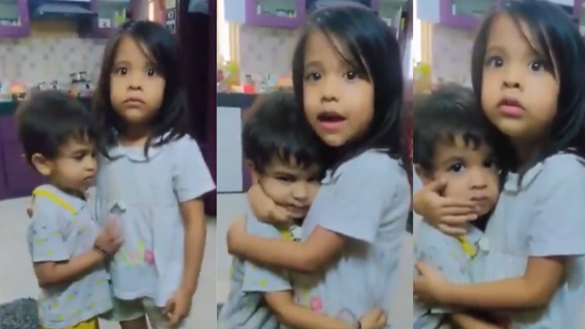बच्ची ने यूं किया भाई को प्रोटेक्ट