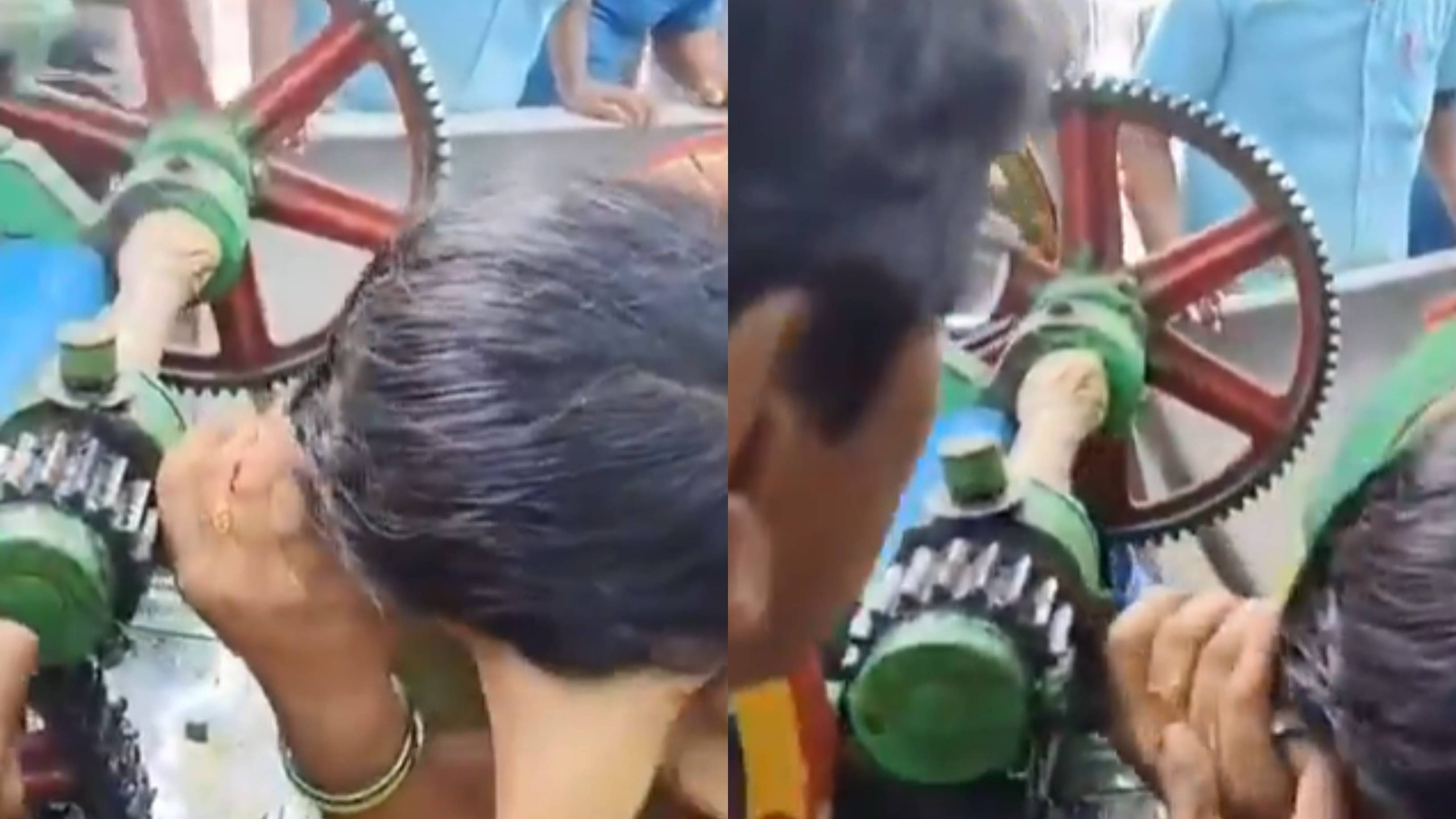 गन्ने का जूस पड़ गया भारी, मशीन में फंसी महिला की चोटी; लोगों की समझदारी से बची जान- Video Viral