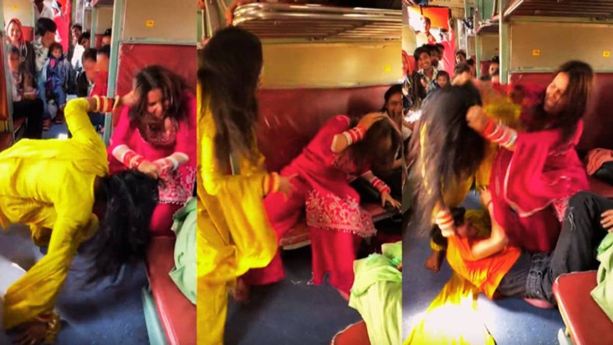 बाल नोंचे, गिरा-गिराकर मारा... ट्रेन में भिड़ी दो महिलाएं, ऊपर की सीट पर बैठे युवक को भी नहीं बख्शा; तमाशे का VIDEO VIRAL