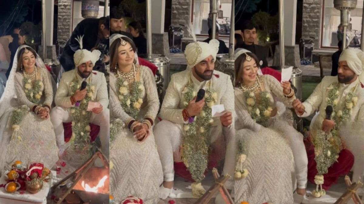 दरअसल, एक-दूजे के साथ जन्मों-जन्मों के बंधन में बंधने के लिए मंडप में बैठा कपल बेहद खुश और एक्साइटेड दिख रहा है। उन्होंने इस दिन का ख्वाब न जाने कब से संजो कर रखा था, जो अब आखिरकार पूरा हो रहा है। ऐसे में इस मौके पर दूल्हे ने कागज का वो टुकड़ा निकाला जिस पर उसने अपनी आने वाले जिंदगी के लिए लड़की के साथ मिलकर सपने देखे थे। इस कागज पर दुल्हन के लिखे शब्दों को पढ़ते हुए दूल्हे ने कहा, 'मैं रितिका भंडारी विशाल केड़िया को अपने हसबैंड के तौर पर स्वीकारती हूं। इसने मुझे पहले रिजेक्ट कर दिया था। इसने लिखा था कि हम उस समय का इंतजार करेंगे।'