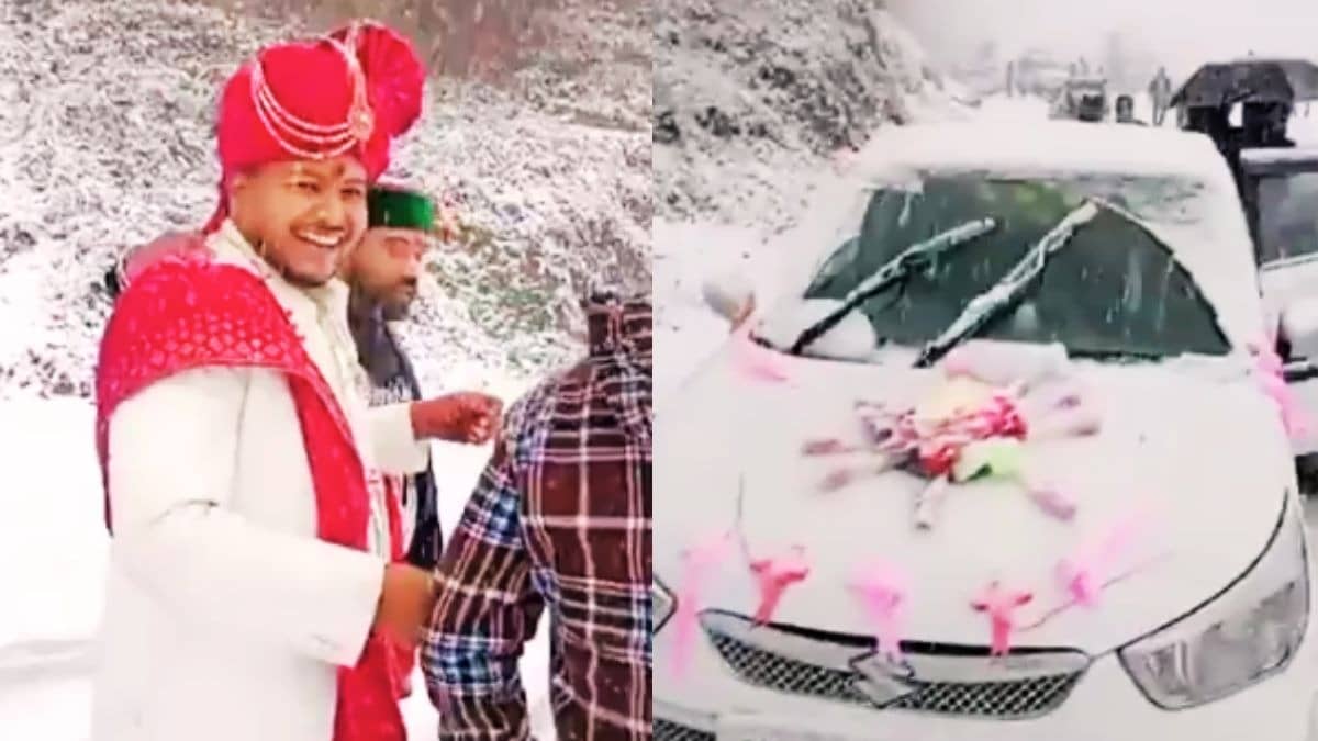 VIDEO: बर्फबारी में फंसी गाड़ी, दुल्हन को लाने बारातियों संग पैदल ही निकल पड़ा दूल्हा; फिर जो हुआ... वो VIRAL है