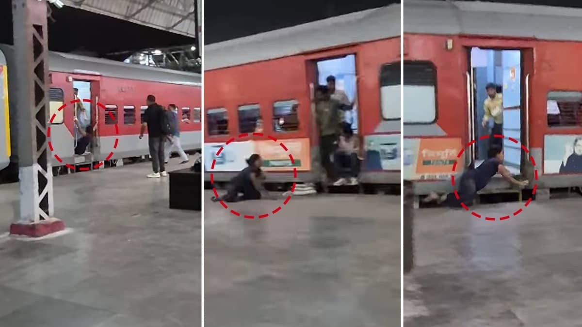 पहली दफा महिला ट्रेन पकड़ने गई और फिसलकर जमीन पर गिर पड़ी। दूसरी बार फिर कोशिश की, मगर हैंडल छूटने से वो प्लेटफॉर्म पर रगड़ती हुई धड़ाम से गिरी। महिला का इस तरह से बार-बार चलती ट्रेन पकड़ना जान खतरे में डालना था। वो ट्रेन के पहियों के नीचे भी आ सकती थी। गनीमत रही कि ऐसा कुछ नहीं हुआ और वो तीसरी कोशिश में किसी तरह कोच में चढ़ने में कामयाब रही।