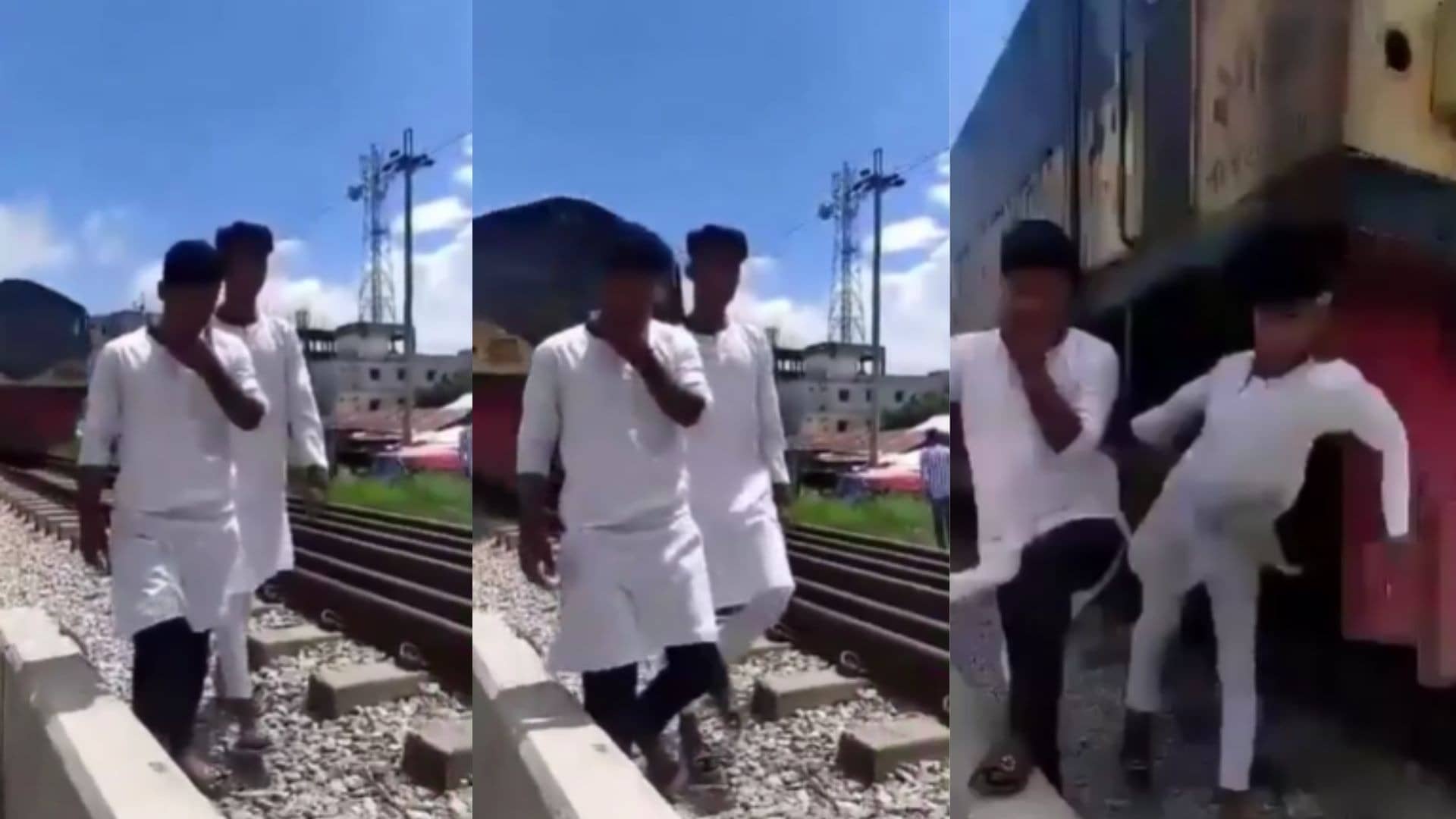 वीडियो में दो युवाओं को रेल की पटरी पर रील बनाते देखा जा सकता है। तब ही पीछे से तेज रफ्तार में एक ट्रेन आती है और फिर...