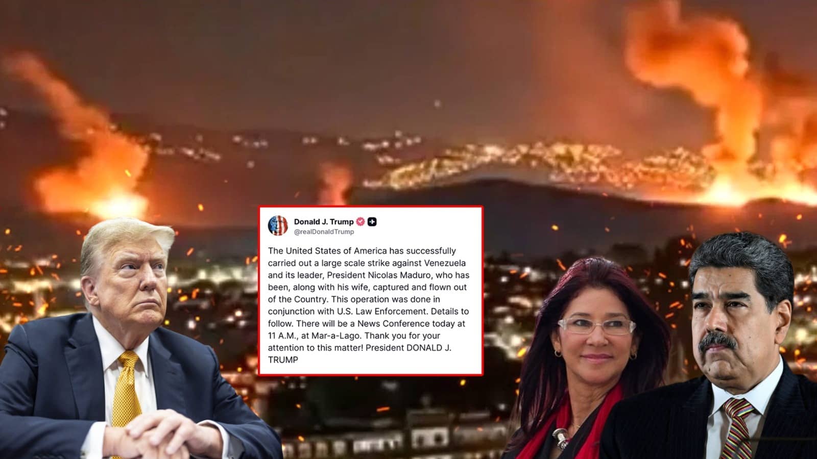 ट्रंप ने अपने सोशल मीडिया प्लेटफॉर्म ट्रुथ सोशल पर एक पोस्ट में लिखा, "अमेरिका ने वेनेज़ुएला और उसके नेता राष्ट्रपति निकोलस मादुरो के खिलाफ एक बड़े पैमाने पर हमला सफलतापूर्वक किया है, जिन्हें उनकी पत्नी के साथ पकड़ लिया गया है और देश से बाहर ले जाया गया है। यह ऑपरेशन U.S. लॉ एनफोर्समेंट के साथ मिलकर किया गया था। ज्यादा जानकारी जल्द ही दी जाएगी। आज सुबह 11 बजे, मार-ए-लागो में एक न्यूज कॉन्फ्रेंस होगी। इस मामले पर ध्यान देने के लिए धन्यवाद! राष्ट्रपति डोनाल्ड जे. ट्रंप"